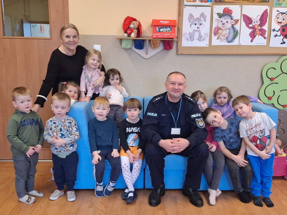 Funkcjonariusz przybliżył najmłodszym podstawowe zasady oraz zasady postępowania w sytuacjach potencjalnego zagrożenia. Zwrócono uwagę na szczególną ostrożność na lodzie i podczas zabaw na śniegu.