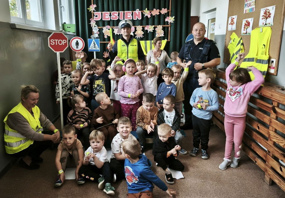 Funkcjonariusze odwiedzili Przedszkole w Ćwiętalce oraz prowadzili akcję na ulicach powiatu, rozdając elementy odblaskowe i przypominając o zasadach bezpiecznego poruszania się po drogach.